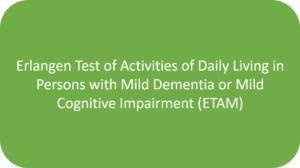 The E-ADL test is used to assess the basic abilities of people with moderate to severe dementia.The ETAM is used to assess the everyday practical abilities of people with mild dementia or mild cognitive impairment. It can also be used for people with moderate dementia.