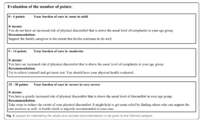 Based on the risk of psychosomatic physical complaints, the severity of which (not increased, increased, greatly increased) was directly related to the extent of subjective care-related stress, the BSFC-s sum value can be interpreted with valid content.